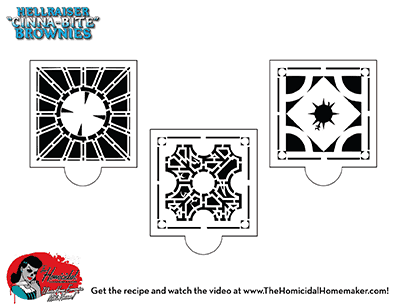 Disclaimer: The Homicidal Homemaker does not take any responsibility should any Cenobites be summoned from baking a batch of these Hellraiser brownies! 🙂